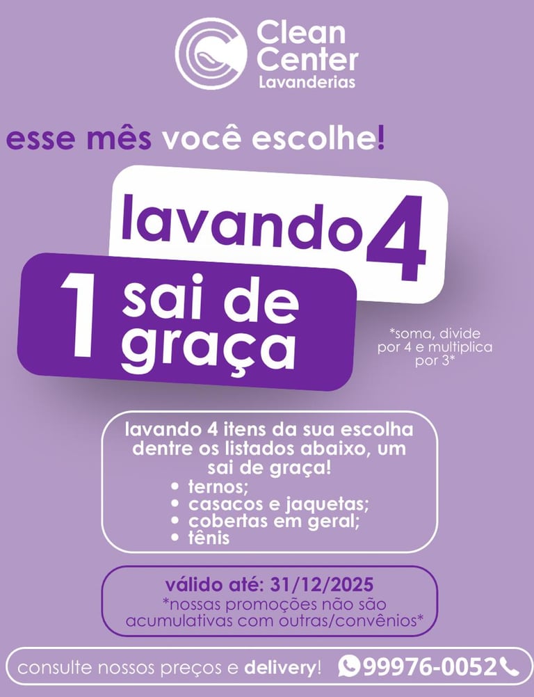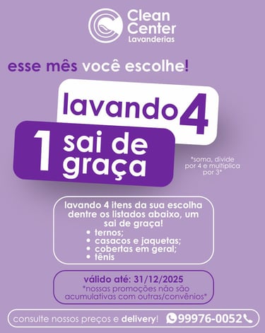 Escolha seus itens e aproveite essa oferta imperdível da Clean Center Lavanderias. 💜👕🧼